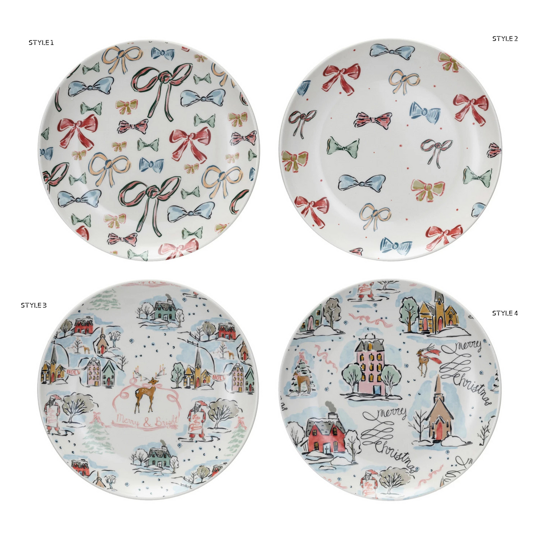 Stoneware Plate with Santa & Reindeer Image, 4 Styles
