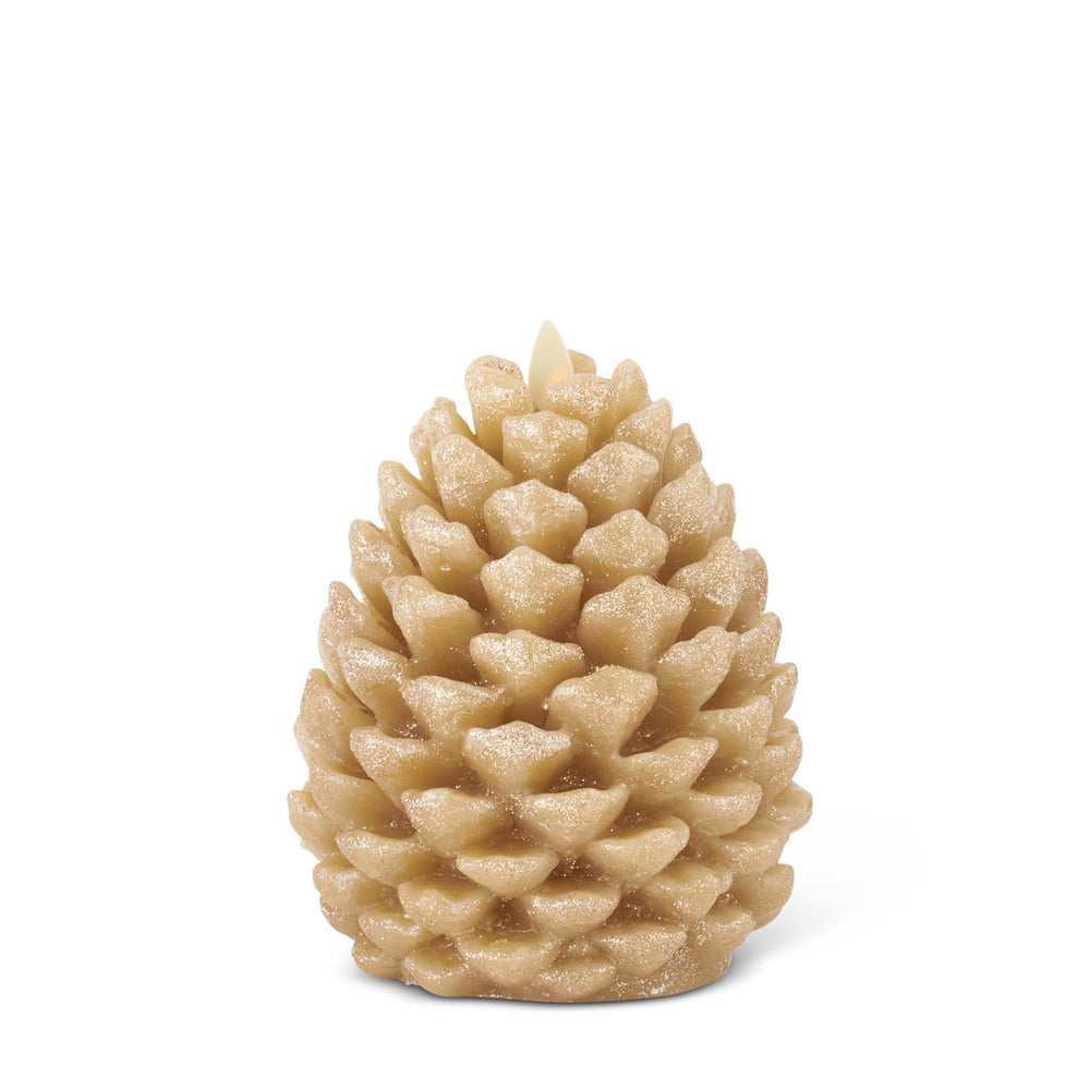 6.5 Inch Gold Wax Glittered Pinecone Luminara Indoor Candle