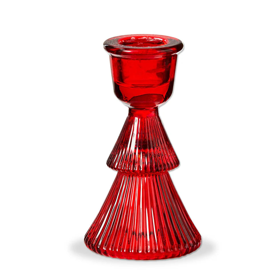 Glass Ribbed Tree Taper Holder Small Red