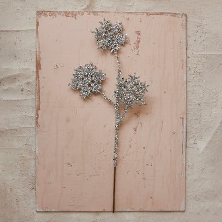 Plastic Snowflake Stem with Faux Pearls & Glitter