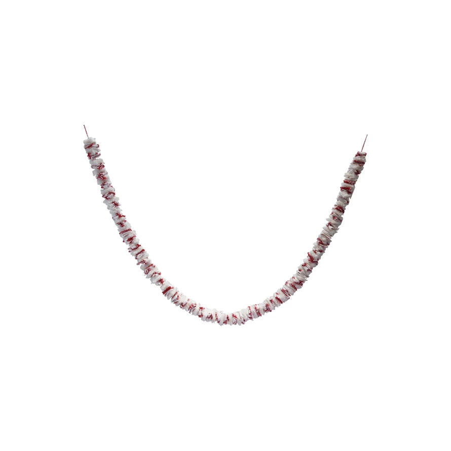 Fabric Garland with Stripes & Frayed Edges, White & Red
