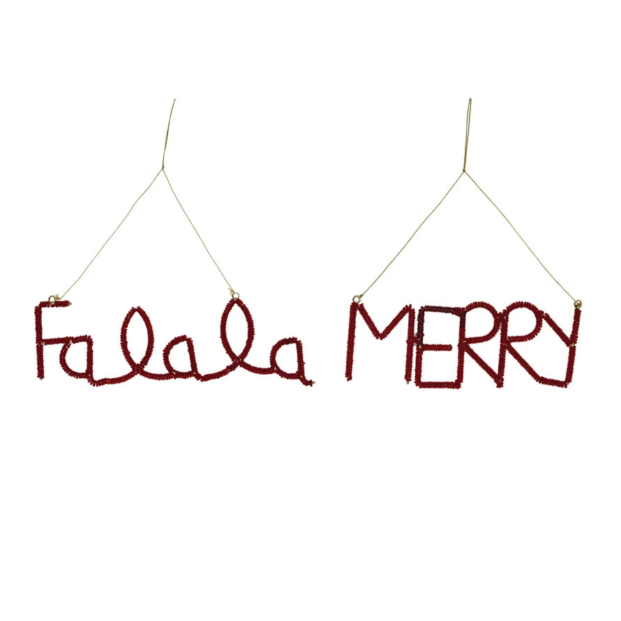 Wire & Glass Beaded Holiday Word Ornament