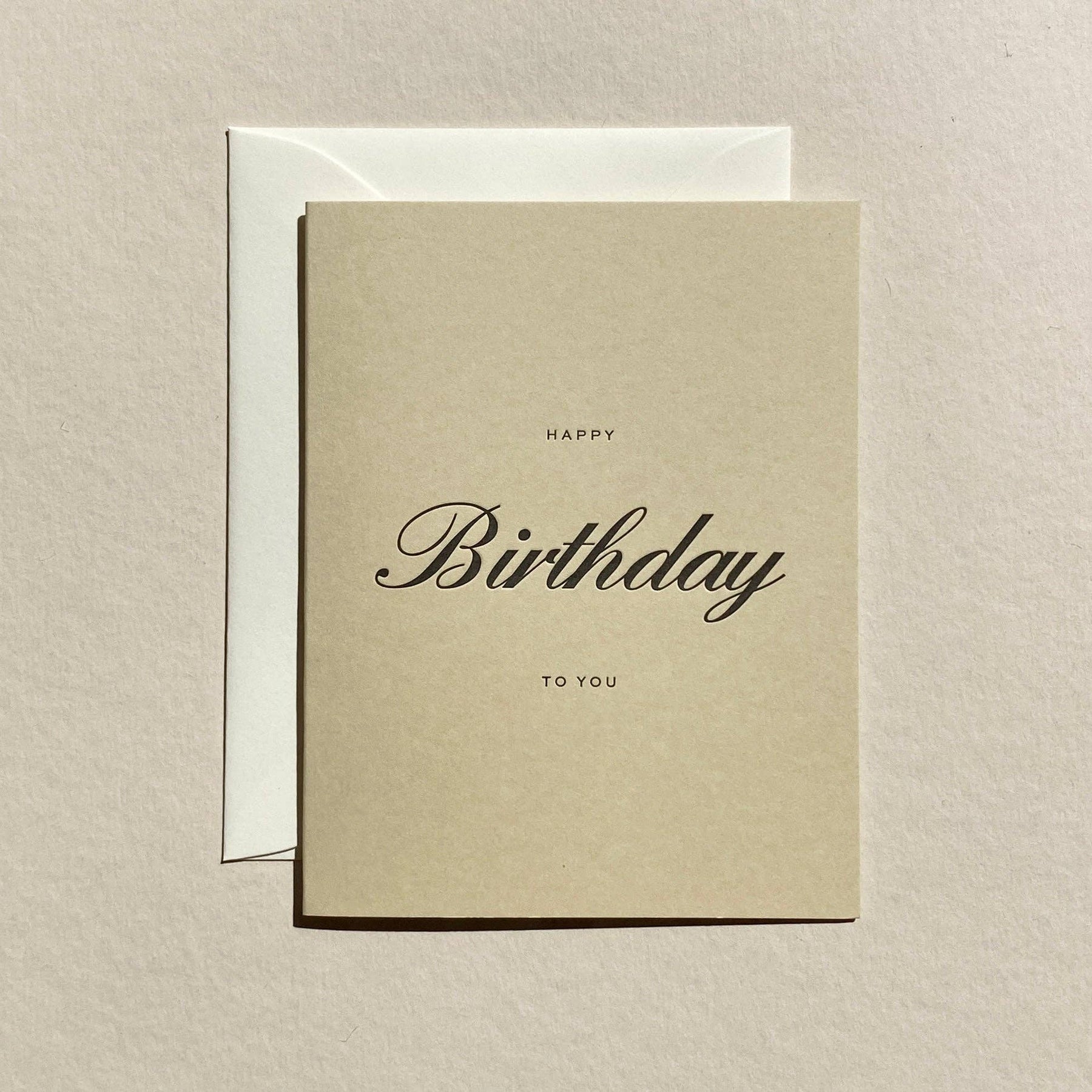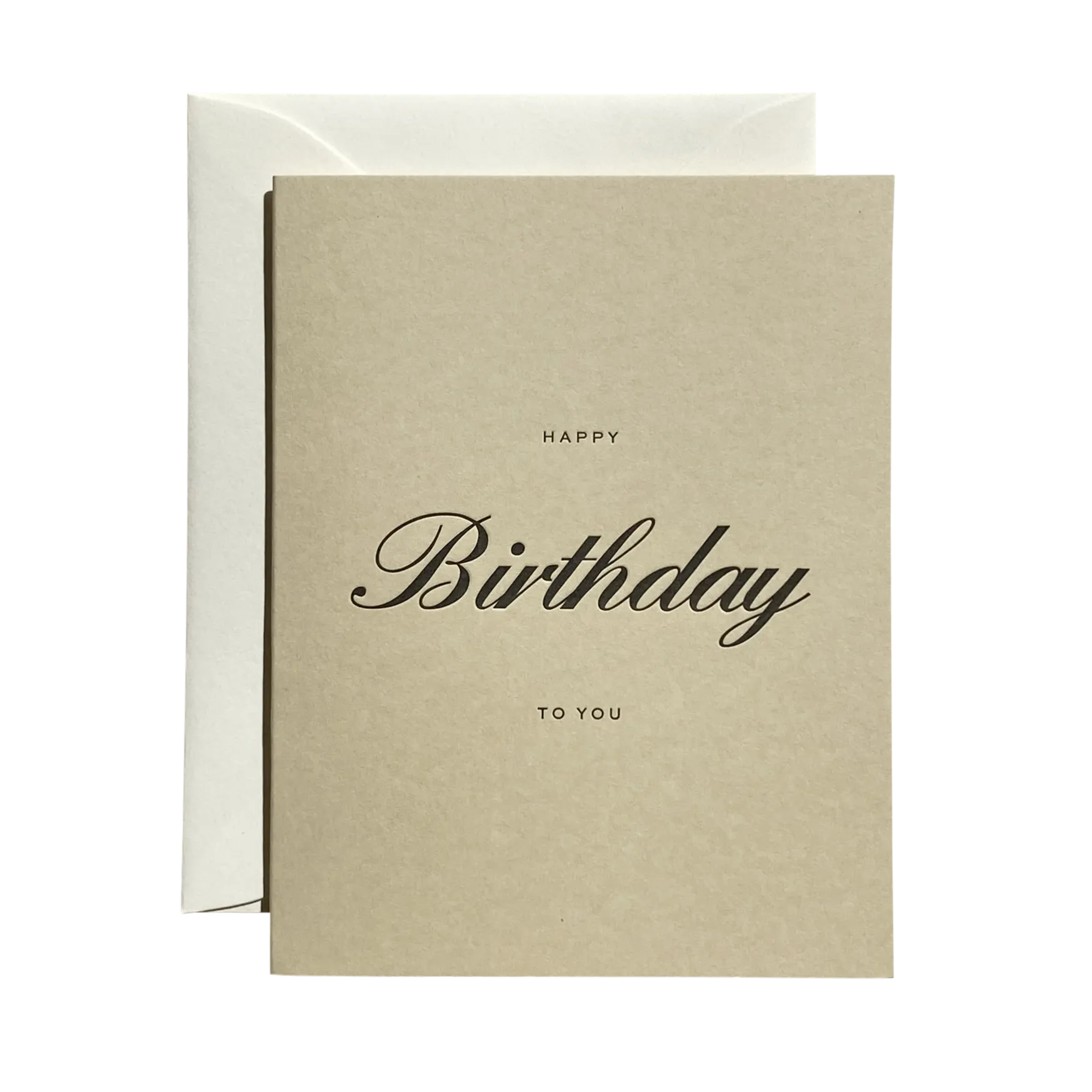 * A2 Folded 4.25" L × 5.5" W * "Happy Birthday To You" * Sand Cover Stock * Letterpress * Natural Envelope * Blank interior * Made in Santa Barbara
